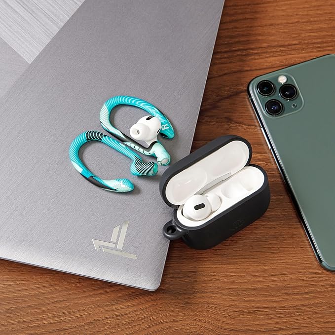 WC HookZ - Patented Upgraded Over Ear Hooks for AirPods Pro 1, 2 & AirPods 1, 2 & 3- Two Size Pairs Included in Package, Unique Left & Right Hook, Made by Wicked Cushions | Cyan Prism