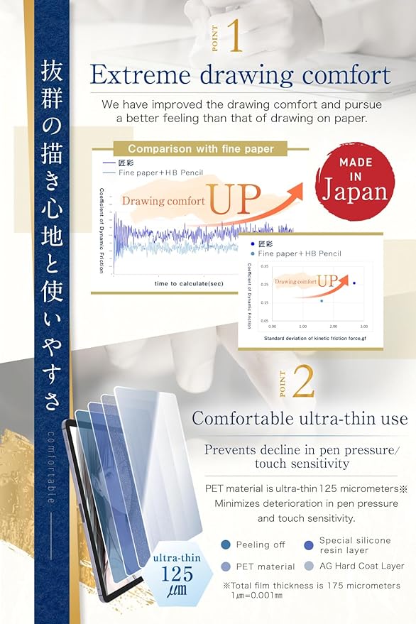 - 【Ultimate Drawing Experience】Enhancing the friction resistance of the film beyond that of fine paper, we aim to improve the drawing experience while pursuing the sensation of drawing on paper. It offers a paper feel drawing feel. Paperfeel screen protector