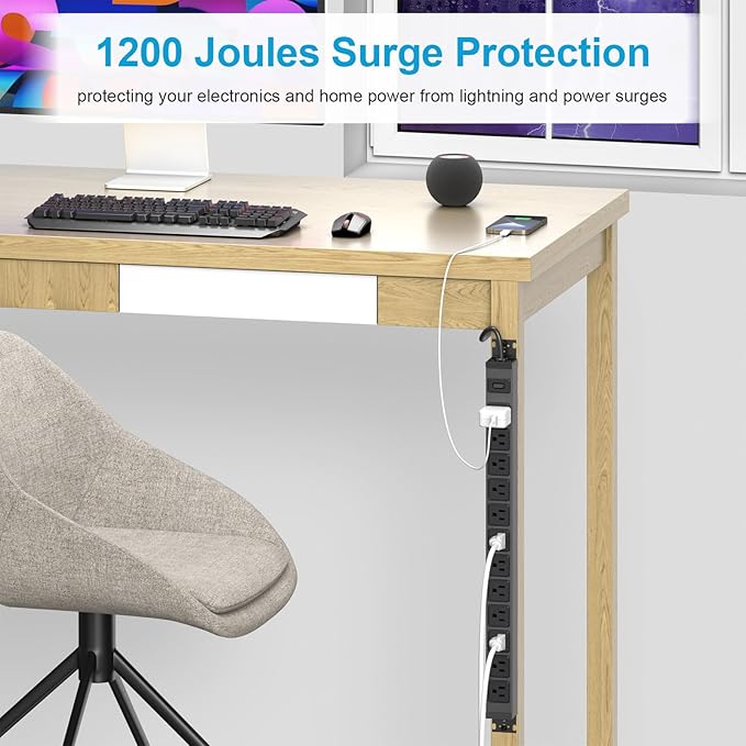 - Industrial Surge Protector: This power strip extension cord comes equipped with 1200J surge protector that safeguards your devices from sudden power spikes and fluctuations. The 6ft power cord provides sufficient reach to connect the power strip to a nearby outlet without any limitations. Surge protection and multiple outlets allow all devices to be plugged in with confidence.