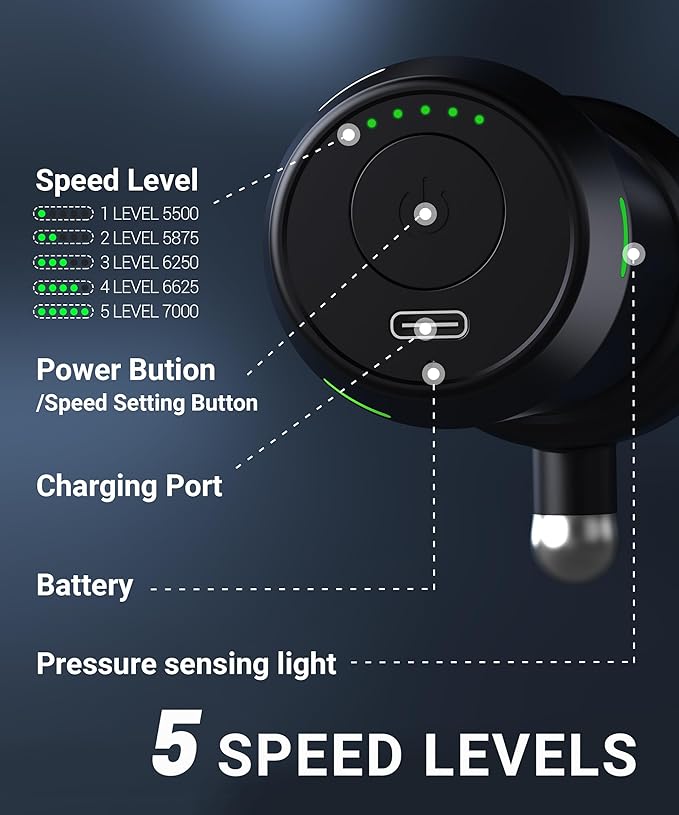 - Extremely powerful: HYAKO R1 - 5 speeds (5500-7000 rpm) is 3-5 times faster than percussion Massage Gun; it produces approximately 120 short strokes per second. High speed vibration therapy quickly alleviates muscle pain and muscle leg cramps - Severe pain caused by muscle adhesions and scar tissues. If you're a professional healthcare provider (PT or chiropractor), this will be your best massage tool