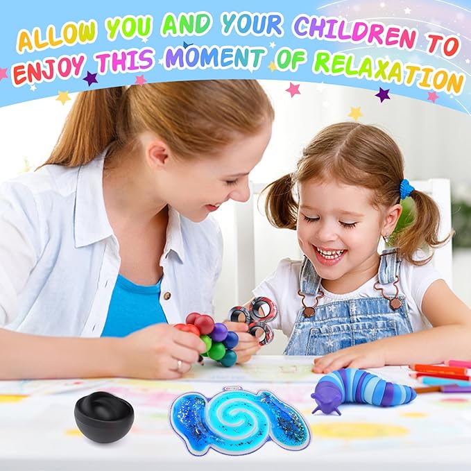 - Toys for Autistic Kids:A box filled with a variety of cool fidget toys to keep kids entertained and help them relieve stress. These adhd toys for kids calm busy hands and brains, so whether you're feeling anxious or bored at work, waiting, they can help