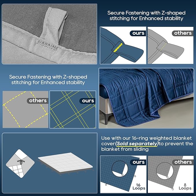 - 7-Layers Luxurious Weighted Blanket: This Weighted Blanket includes two extra breathable cotton layers between the outmost premium fabric and non-glue polyester padding, for most adaption to your body shape and better temperature control