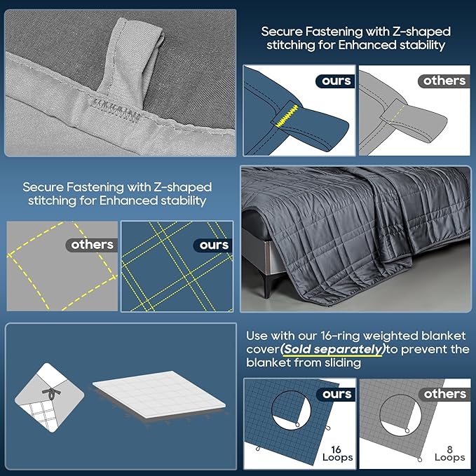 - 7-Layers Luxurious Weighted Blanket: This Weighted Blanket includes two extra breathable cotton layers between the outmost premium fabric and non-glue polyester padding, for most adaption to your body shape and better temperature control