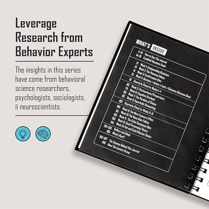 - DRIVE SUCCESS THROUGH SMARTER DECISIONS: Start your journey with a Guided behavioral insight designed to Improve decision making. Daily journal prompts align with each week's focus to help you feel happier, reduce stress & find balance. This Self Improvement Journal helps build better habits, set goals & bring order to the chaos. As an Undated daily planner & Guided journal, it brings together mindset, goals & effective decision making. “Because mental clarity doesn’t come from doom scrolling”.