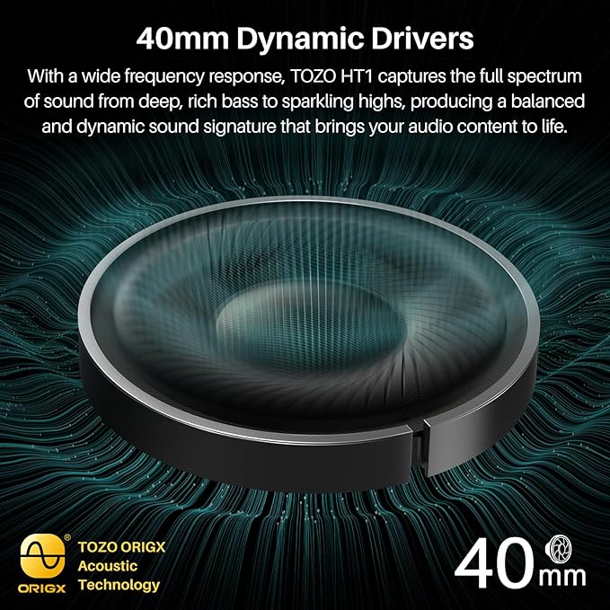 - [Both Wired and Wireless Connections] Equipped with dual 40mm drivers, TOZO HT2 bring you superior Hi-Res audio sound with a well-balanced deep bass, make you have a better listening experience. Plus, it breaks the single connection method, support both wireless and wired connection. When with wired connection, custom oversized 40 mm dynamic drivers produce Hi-Res sound for extraordinary clarity and detail.