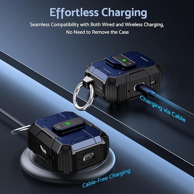 - 【Convenient Charging & Portability】The case supports both wired and wireless charging for your Airpods Pro 2 case. The front LED remains visible to show the charging status. An included portable carabiner allows you to conveniently take your Airpods Pro 2 case with you during outdoor activities like climbing, hiking, and travelling.