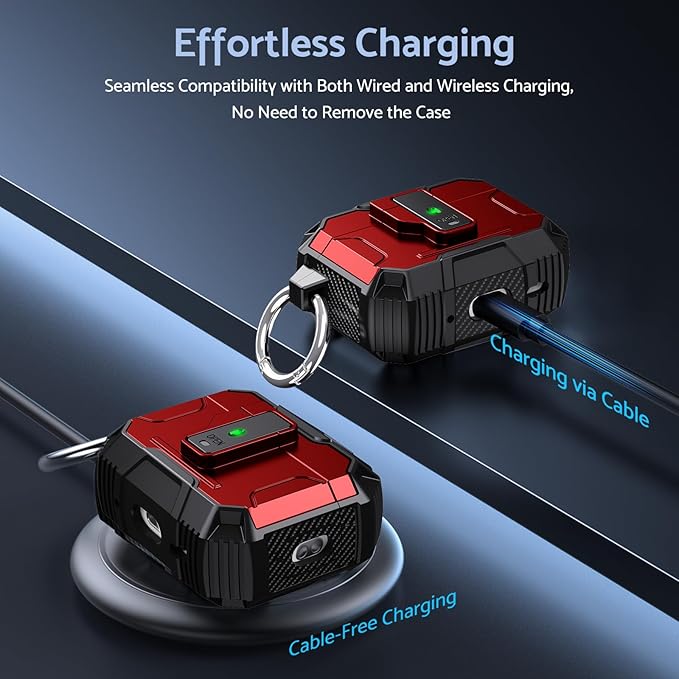 - 【Convenient Charging & Portability】The case supports both wired and wireless charging for your Airpods Pro 2 case. The front LED remains visible to show the charging status. An included portable carabiner allows you to conveniently take your Airpods Pro 2 case with you during outdoor activities like climbing, hiking, and travelling.