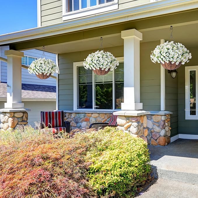 - Durable and UV Weather-Resistant: The looking real fake hanging plants are made of high quality silk cloth and plastic, which are designed to withstand outdoor elements, and UV and all weather resistant, so they won't fade or deteriorate in the sunshine.