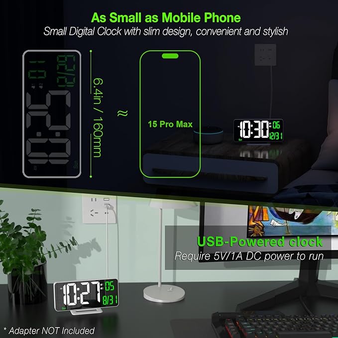 - [Plug-in USB Power Supply] This digital clock requires a 5V/1A AC adapter (not included) to operate.