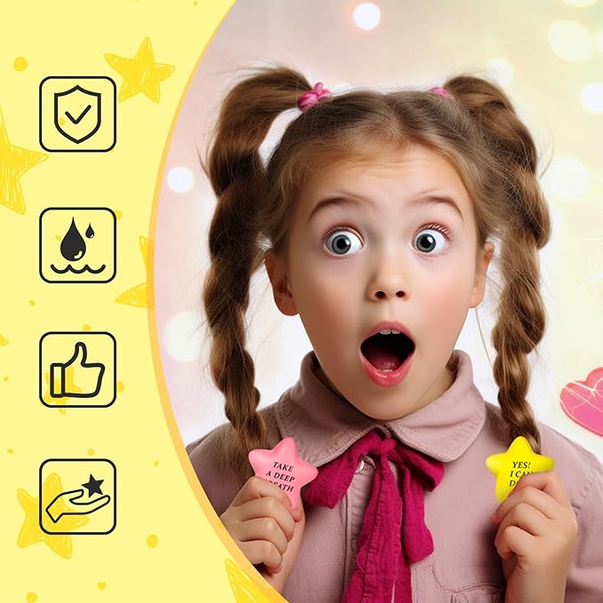 - Vibrant and Bright Colors - These star stress balls come in 6 vibrant colors, creating a visually appealing experience. When reading the uplifting words on these balls, you will feel a sense of calm and positivity, promoting stress relief.