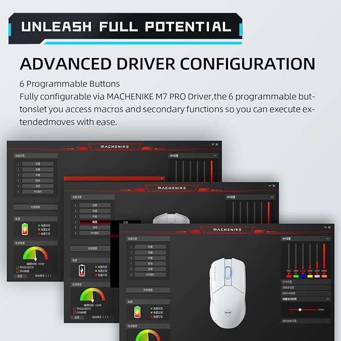 - 🖰【Customize your gameplay needs with our programmable mouse.】The M7 Pro is a fully programmable gaming mouse. Every button is customizable and supports macro editing, enabling you to reassign buttons and modify DPI to meet your specific requirements. This pc mouse wireless feature caters to all your customization needs, enabling rich gameplay.