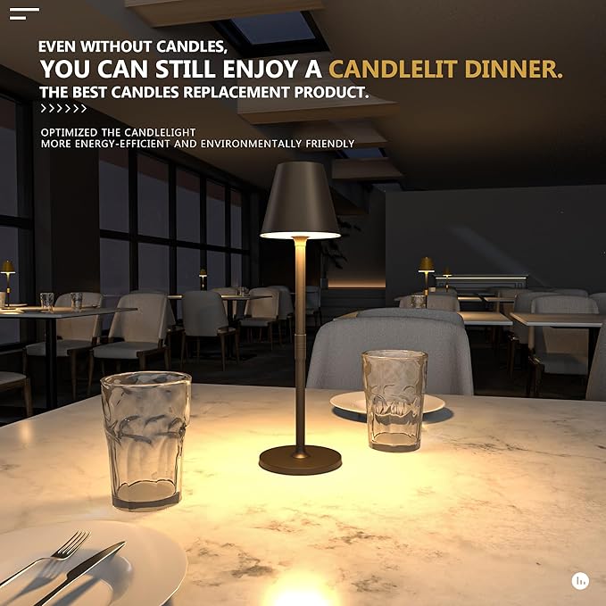 LED CordlessTable Lamp,4000mAh Rechargeable Battery Desk lamp,3 Level Brightness Beside Night Light, Minimalist Design, for Couple Dinner/Coffee Table/Restaurant/Bedroom(Kahaki-4PACK)