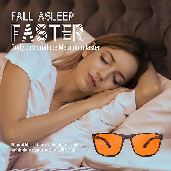 - Blocking Blue Light for Better Sleep: Blue light exposure before going to bed has been proven not only to make falling asleep more difficult, but also to reduce the quality of sleep recovery.By using bloomoak Amber glasses before going to bed, you can fall asleep like a baby again, and wake up refreshed.