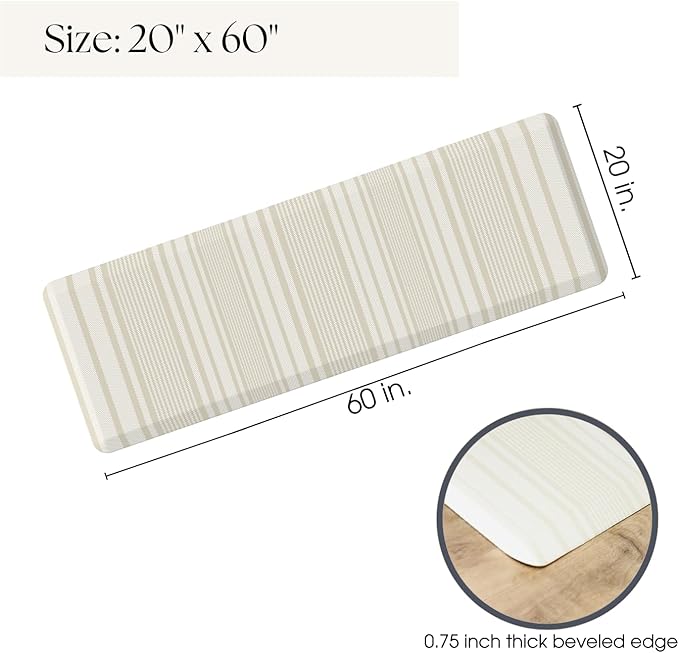 Anti Fatigue Mat by Laurel Lane Co. – Designer Anti Fatigue Mats for Kitchen Floor, Kitchen Mats for Floor, Desk Mat – Cushioned 0.75" Thick – Stain Resistant – Non-Skid Bottom – 20" x 60"