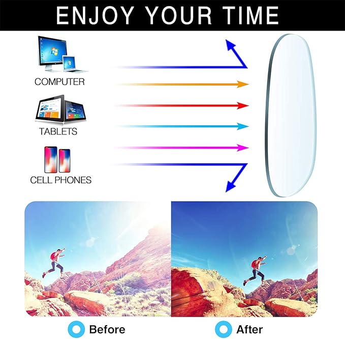 - BLUE LIGHT FILTER LENS - Henotin transparent lens. Blue-ray blocker with UV400 protection, Effectively resist harmful Anti-blue Light. prevent insomnia and macular degeneration. Obviously reducing eye strain, glare, headache, fatigue, migraine caused from gaming / reading phone PC TV digital screen.