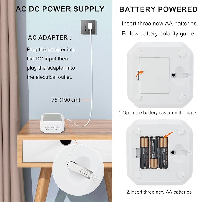 - ♫PLUG IN OR USE BATTERY - Powered by an AC adapter (included) or 3 AA batteries (not included), making it an easy portable solution for travel.