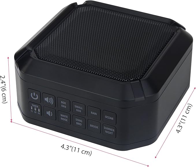 - [Compact Design & ON-THE-GO Comfort] – Our portable noise machine with compact size (4.3” x 4.3” x 2.4”), easily fits into your bag or suitcase for on-the-go convenience. You can place it in your bedroom, living room or office or bring it to anywhere for calming sounds.