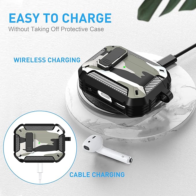 - 【Military AirPods Pro 2/Pro Cover with Secure Lock】 Military shockproof Airpods Pro 2/Pro cover made of TPU and PC materials to makes the AirPods Pro 2/Pro case anti-shock, anti-slip and anti-fingerprint. Secure lock design, easy to open and close top cover with the open button