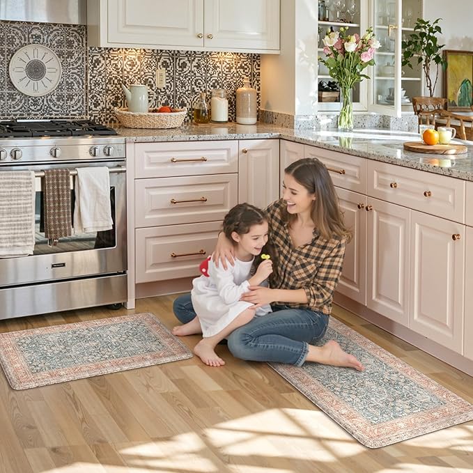 - Versatile: Vintage farmhouse style kitchen rug,easily to match your kitchen decor,bright your home.Soft thick foam provides ample support for standing in kitchen sink,laundry room, office,bathroom,dinning room,or any other high-traffic area