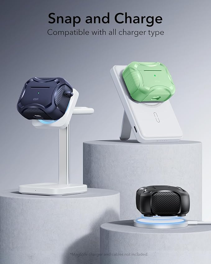 - MagSafe Ready: strong magnets in the back of the case ensure a secure lock on MagSafe chargers, letting you enjoy tap-and-go wireless charging for your earbuds