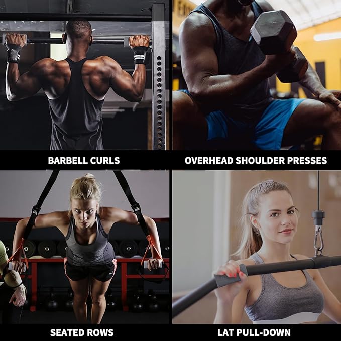 - Protect Yourself from Hand Fatigue--The thick grips are produced using high-thickness silicone elastic; accordingly, when utilized as free weight grasps, they never slip or pack and save you from calluses and going through hand weakness, particularly during a difficult a challenging workout session.