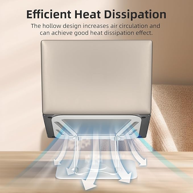 - Heat Dissipation Design: Boasting a hollow design, the foldable laptop stand maximizes ventilation, preventing your notebook from overheating and helping it function efficiently.