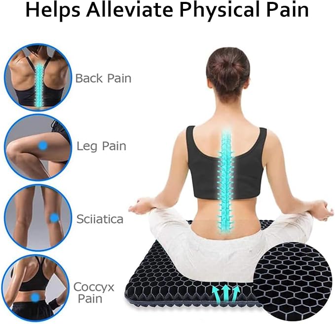 - 【Honeycomb Design】It adopts more than 500 balanced pressure and flexible honeycomb grids, disperses the pressure of the whole buttocks and thighs, perfectly fits the buttocks curve, soft and without losing support force. Medical grade gel material doesn't irritate the skin, the thickness of 1.65inch is enough to support the weight of the body.