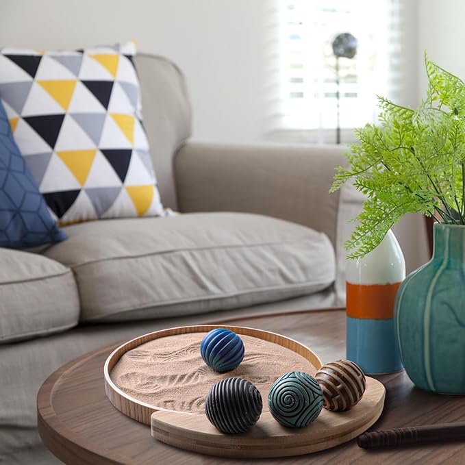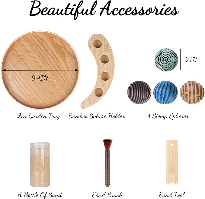 - šæ Meaningful gift for all occasions: Our Zen Garden with four resin stamp spheres is a perfect choice for birthdays, holidays, or special occasions. Packaged beautifully for on-demand gifting, it promotes mindfulness, relaxation, and personal well-being.