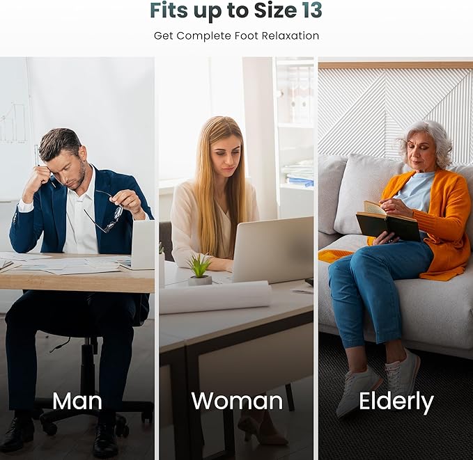 - Compact Design & Lightweight Convenience: The foot massager with heat is easy to store and use at anywhere. Additionally, the comfortable inner space comfortably accommodates feet up to size 13, ensuring a snug and enjoyable massage experience.