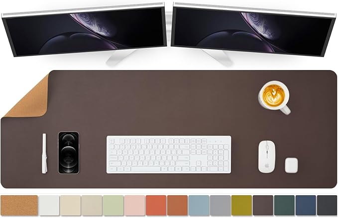 - Eco-friendly dual-sided design with Versatile Surface: Our desk mat combines a sustainable cork side and a premium PU leather side, offering both versatility and eco-conscious style for your workspace. The smooth surface supports seamless mouse operations and effortless writing tasks, promoting desk organization.