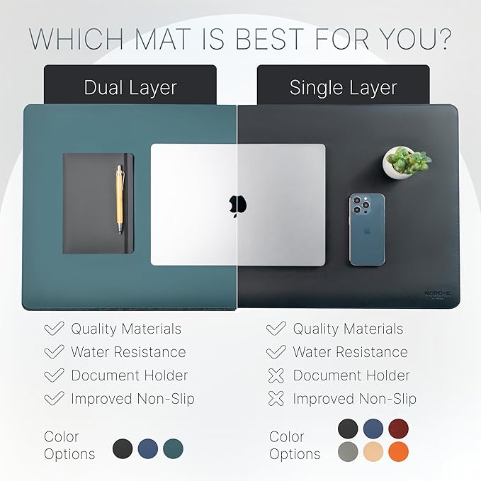 - Dual-layered masterpiece: Combines a slick, waterproof vegan leather top with a plush felt underlay, offering unparalleled desk comfort and a stylish look. Offering an elite workspace experience.