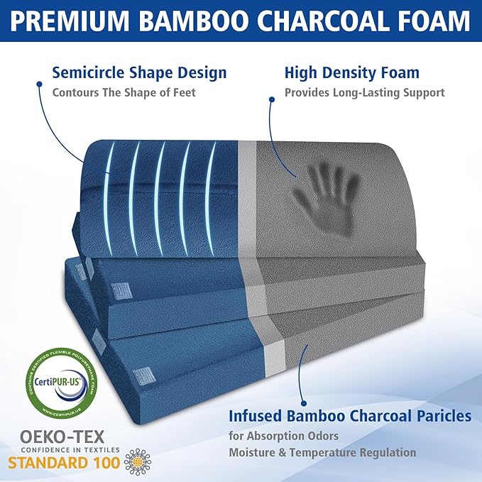 - [Supportive High Density Foam] The foot rest under desk utilizes high-density foam infused with bamboo charcoal particles. Compared to ordinary foam, high-density foam provides better support, less deformation, and greater resilience. Additionally, the filled bamboo charcoal particles effectively regulate temperature and odors.