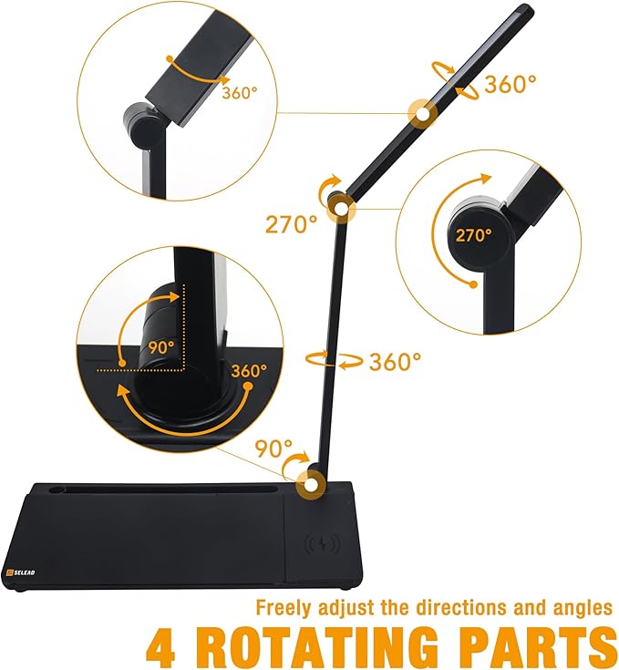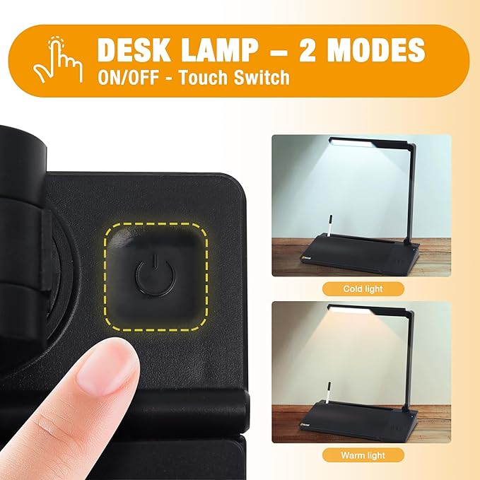 - š” DESK LAMP: Fingerprint touch switch, very easy to operate. It contains two modes of warm light and cold light to meet your different scenarios. 4 rotatable parts, freely adjust the directions and angles for easy use.