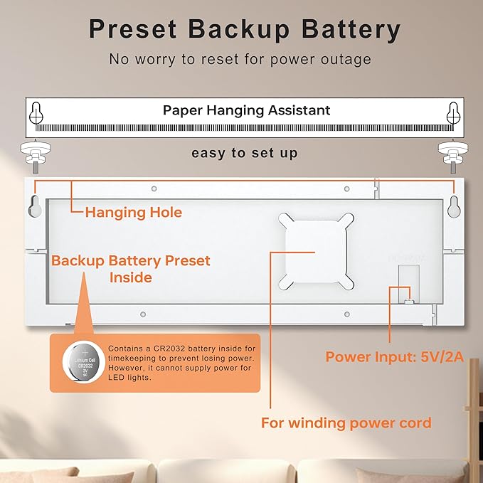 - 【Have to Plug-in】It's NOT battery operated. It must work with 5V/2A power adapter and 11.5 feet cable cord (included). There's a memory battery inside so it will remember your setting even it's disconnected.