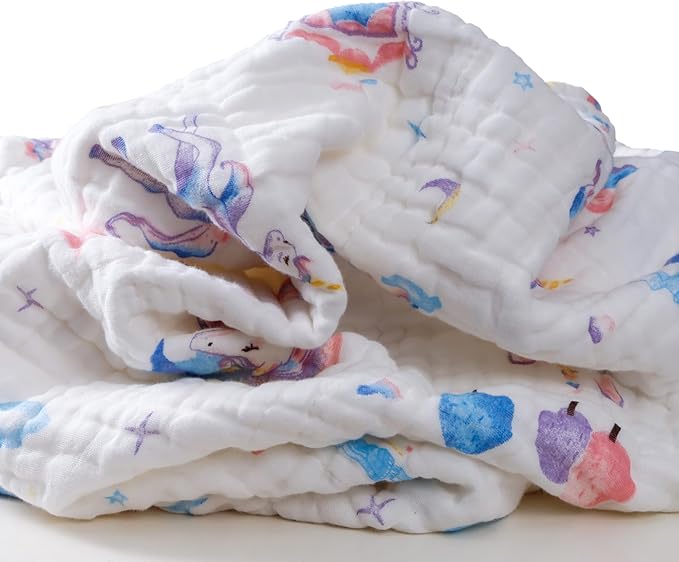 ZPECC Muslin Baby Blanket Thicker, 30x40 Organic Cotton Newborn Receiving Quilt Hypoallergenic for Baby Essentials Swaddle Crib Stroller, Unicorn