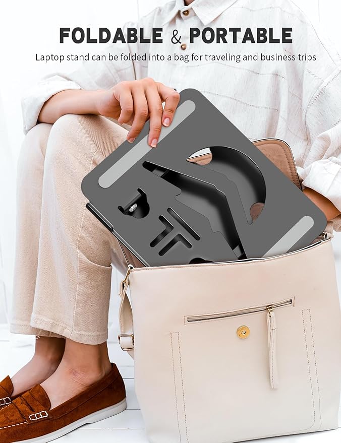 - FOLDABLE AND PORTABLE: This adjustable laptop holder is foldable and portable, featuring a 'Z' design that folds into a compact book size. Silicone strips and silicone-padded hook on the top surface prevent slipping. Our portable laptop holder offers convenience and stability for users on the go