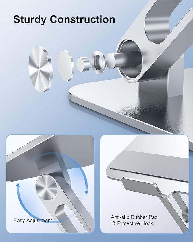 Adjustable Laptop Stand Ergonomic Computer Riser Aluminum Laptop Stand for Desk Portable Notebook Stand Laptop Riser Holder Compatible with 10-17.3’’ Laptops Tablets,Silver