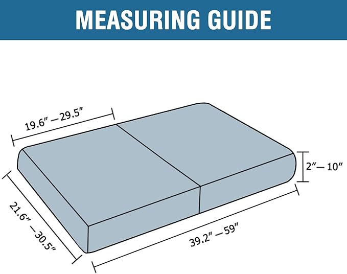 - GREAT FIT: Set of 2. This innovated cushion slipcover is crafted from durable and soft high stretch knitted jacquard fabric. Loveseat Seat Cover(fit total sitting area between 39.2-59 inches). Feature one-size-fits-most, kindly measure before ordering. Suitable for both T cushion and Box cushion styles
