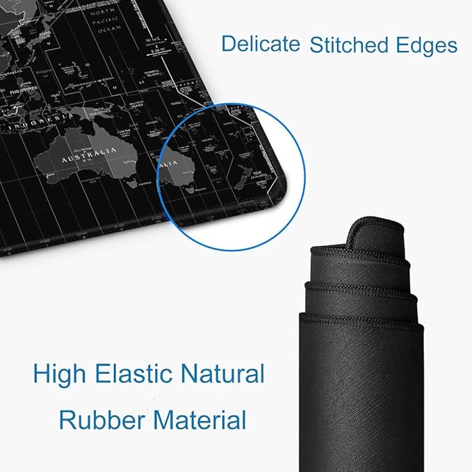 Large Gaming Mouse Pad with Stitched Edges, Desk Mat Extended Keyboard Pad, Non-Slip Rubber Base Desk Pad for Laptop, Office, Home, 31.5X11.8 inch Black World Map