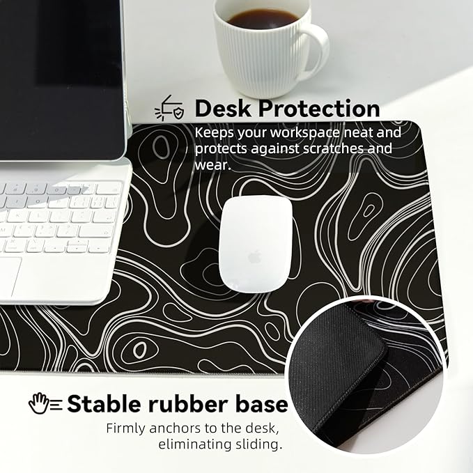 Waterproof Large Gaming Mouse Pad with Durable Stitched Edges, Non-Slip Rubber Base, Smooth Surface Mouse Mat Desk Pad for Home Office Gaming, 31.5"x11.8"x0.12", Black Topographic Map