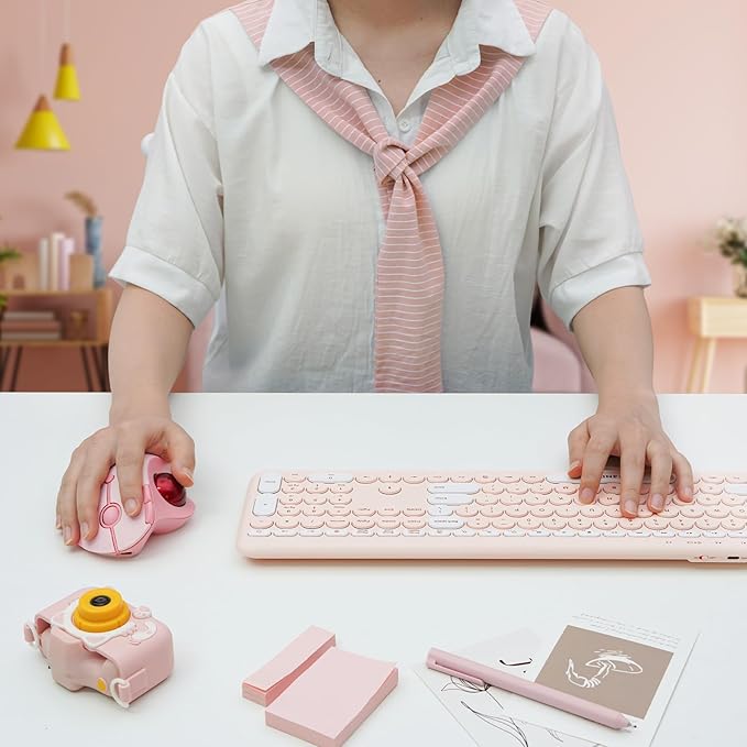 seenda Wireless Trackball Mouse, Bluetooth Ergonomic Rollerball Mouse Rechargeable Multi Devices USB/Bluetooth Connection Thumb Control Mice Compatible for Mac/Android/Windows Computers, Pink