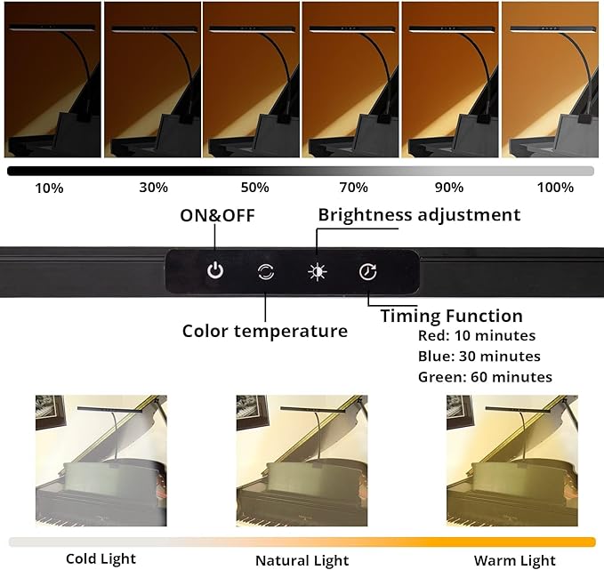 Piano Lamp with 3 Color Modes, Adjustable Height & Direction - Desk Light with Auto-Off Timer - Wide Illumination Music Stand Light