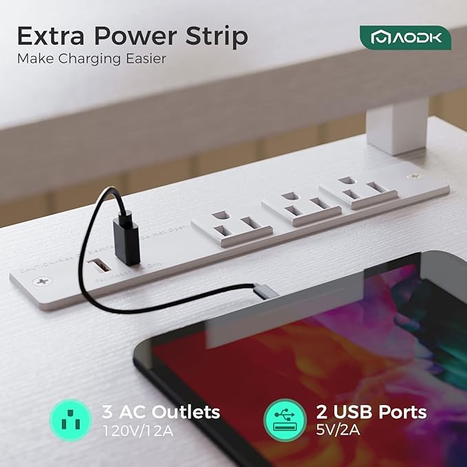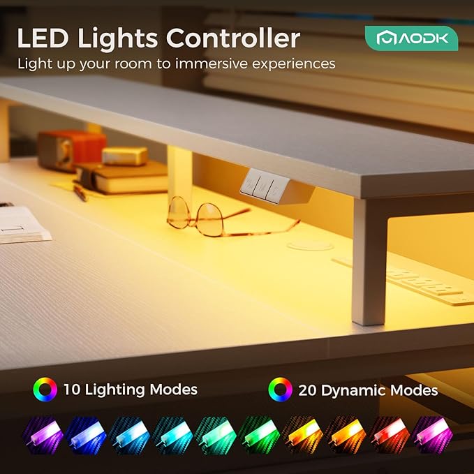 - Power & LED Lights: This AODK Standing desk includes a built-in power outlet with 3 Outlets & 2 USB Ports to charge your devices. Also, you can use the LED Lights to vary the 20 light modes to bring various atmospheres to your space