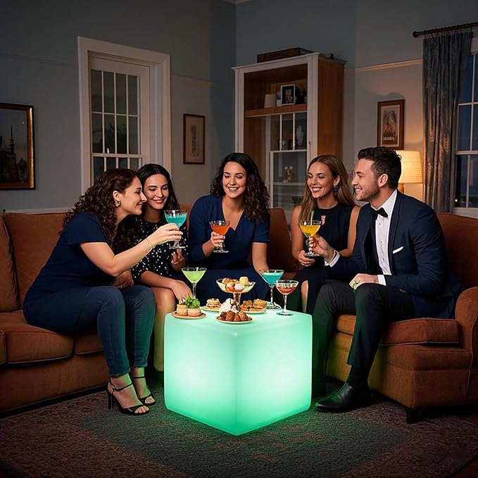 - Total Functionality Overload: MR.GO 20-inch LED cube light is a true all-rounder. It's a cool glowing cube seat/chair for adults and kids, a trendy coffee/side table that adds a modern touch, a glowing nightstand for cozy nights, and a mood light that sets the perfect vibe. Whether it's in your living room, bedroom, a swanky café, or at a rad outdoor party, it brings warmth and style to any indoor or outdoor spot