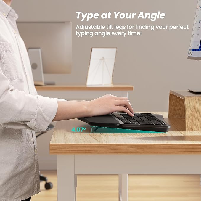 - Exceptional Comfort: Standard keyboards force you to hold your wrists and arms at angles that can cause discomfort or pain in your hand, arm, or shoulder. With Nulea ergonomic wireless keyboard, it can help you position your body more properly, with your shoulders relaxed and can reduce the risk of fatigue and injury by its split, splayed and curved design.