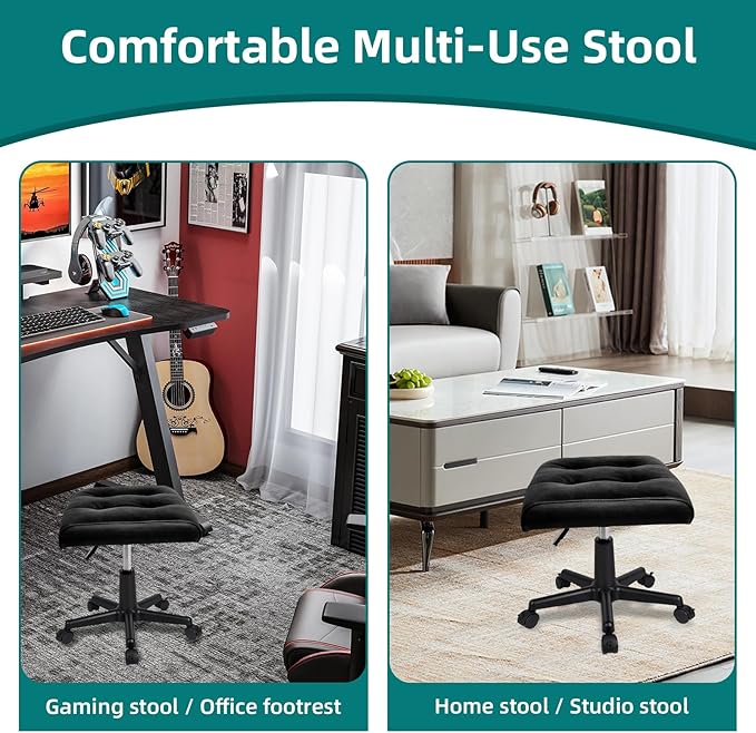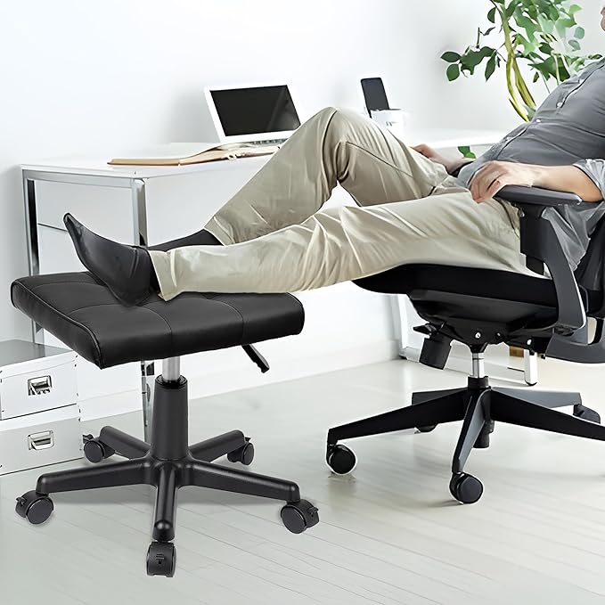 Real Leather Tall Foot Stool, Adjustable Leg Rest Ottoman Footrest with Wheels & Thick Padding, Ergonomic Footrest for Office & Gaming Chairs - Height 14.6-19.6 Inch, Lockable 360-Degree Casters