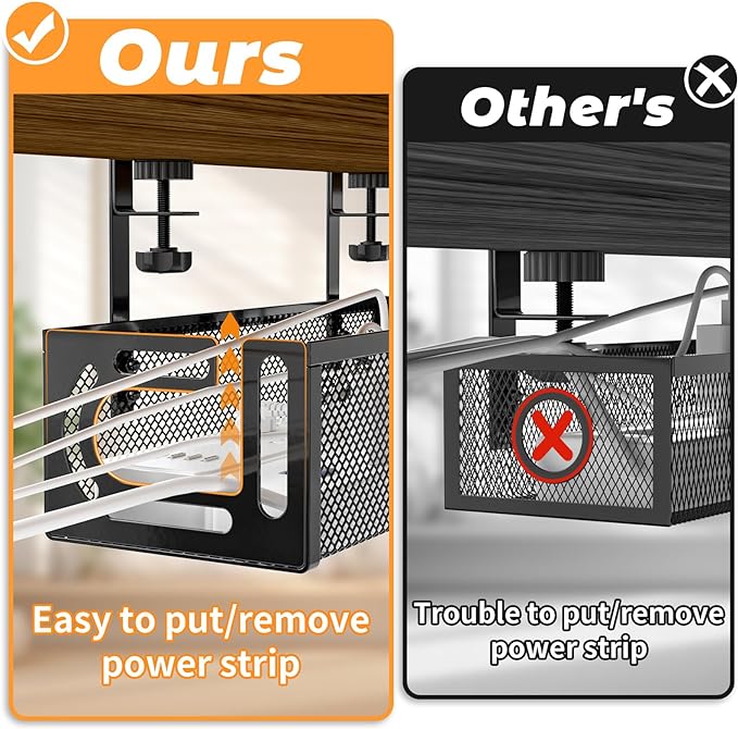 - 【No Drilling Installation】Assembling Foellstoe cable management box is a breeze and takes only 3 minutes or less. The side clamps easily grip the edge of your desk, passing through the side holes, and the basket secures any excess cables.