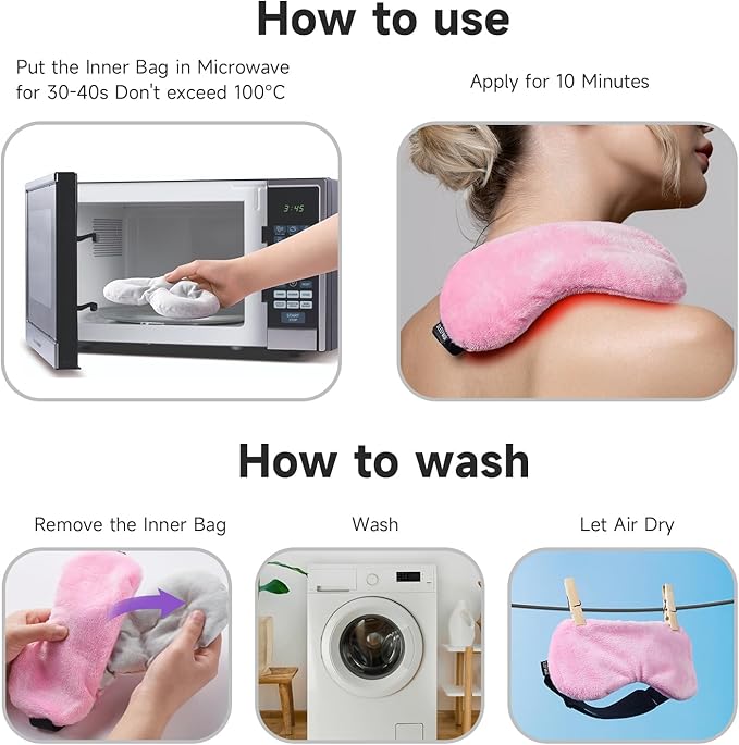- [Hot Therapy] Put the sleep mask into a microwave for 40-60 seconds under 90°C/194 degrees Fahrenheit/600W (do not overheat), promote blood circulation around the eyes for hot therapy. Warm tips: Under 30min using time for hot therapy is suggested