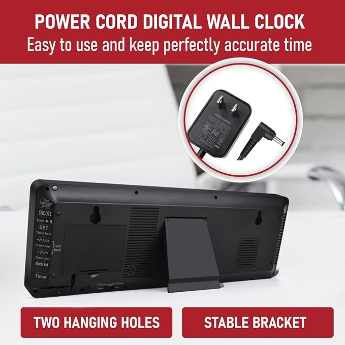 - 【Large Wall Clock & Desktop Clock】The led digital wall clock has a bracket for standing on a desk/shelf/nightstand, as well as 2 hanging hole at the back for easy wall mounting. It has 12 or 24 Hours display format and it can monitor and display the indoor temperature accurately in ℉/℃. Perfect for gym, living room,kitchen, office, classroom, warehouses and etc.