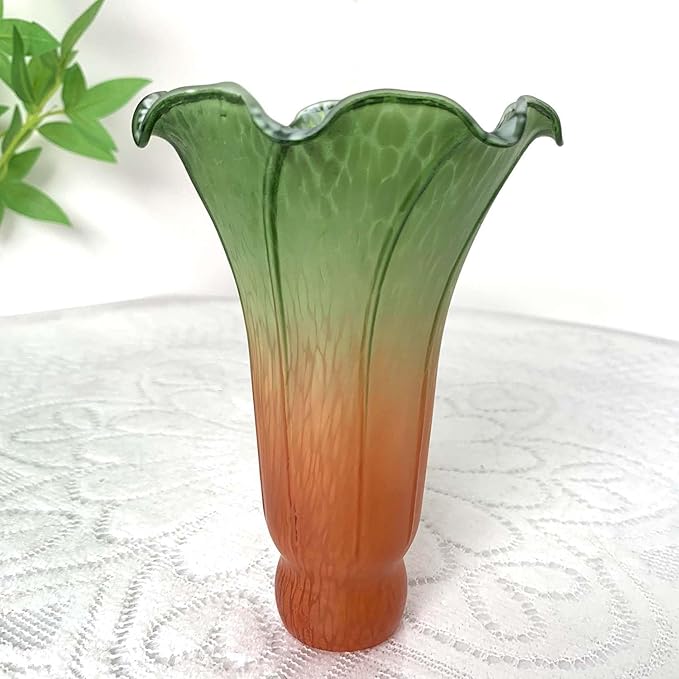 Bieye LS23 Lily Flower Blown Glass Lampshade (Orange Green, Opening I.D. 1.26" x O.D. 1.5")